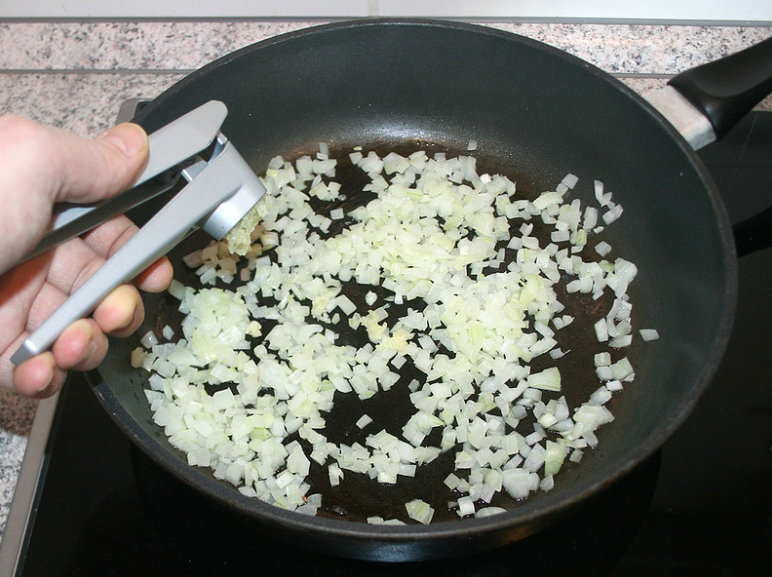 Hoewel veel recepten suggereren om ui en knoflook samen te bakken, stelt Kees dat dat anders moet.Knoflook heeft gezondheidsvoordelen