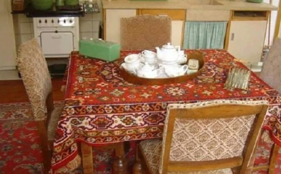 Die dikke, hoogpolige kleden lagen er niet zomaar. Ze beschermden de tafel tegen vlekken en krassen, waardoor het blad veel langer mooi bleef. Daarnaast gaven ze de eethoek meteen een warme, elegante uitstraling, wat de boel extra gezellig maakte. Het zachte materiaal dempte ook geluid, waardoor gesprekken tijdens het eten prettiger klonken. En in verschillende tradities stonden zulke tafelkleden symbool voor gastvrijheid en gewoonten: bij speciale gelegenheden werden ze bewust neergelegd om gasten welkom te heten en in het zonnetje te zetten.