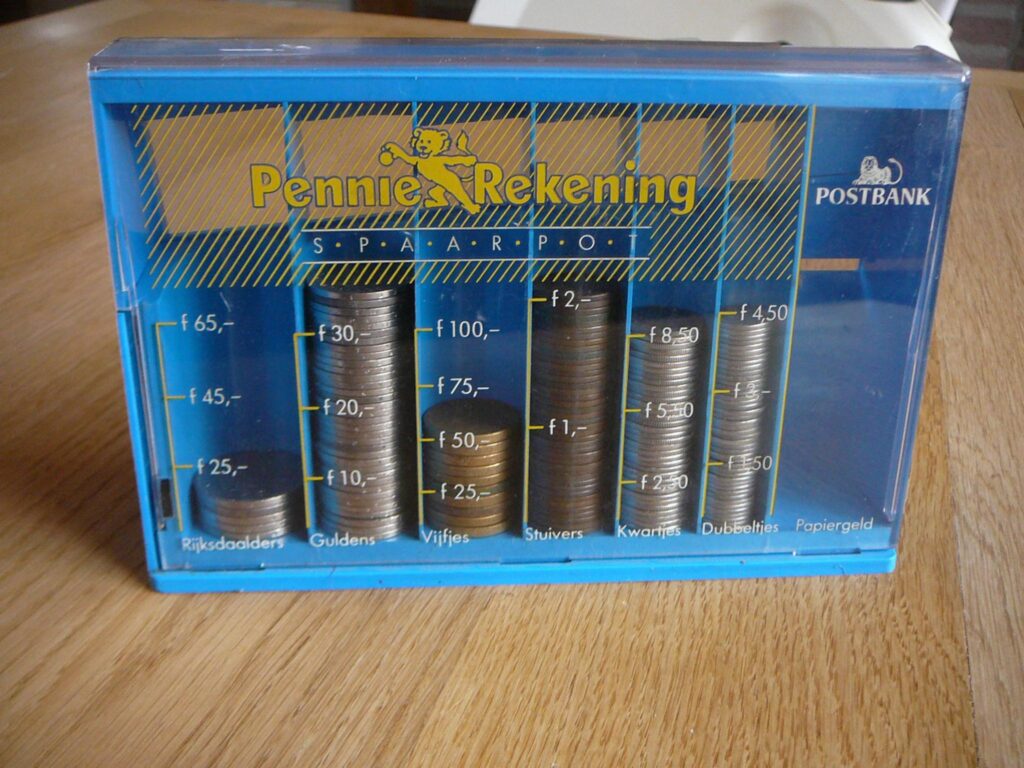 Antwoord: Een pennie rekening spaarpot van de Postbank – een ingenieuze, mechanische spaarpot die kinderen kregen als ze een pennie rekening bij de bank openden. Het had aparte vakjes waar munten precies in pasten, waardoor je kon bijhouden hoeveel je al verzameld had. Het was zowel een leerzaam hulpmiddel als een nostalgisch object, dat generaties hielp begrijpen hoe je echt moet sparen.