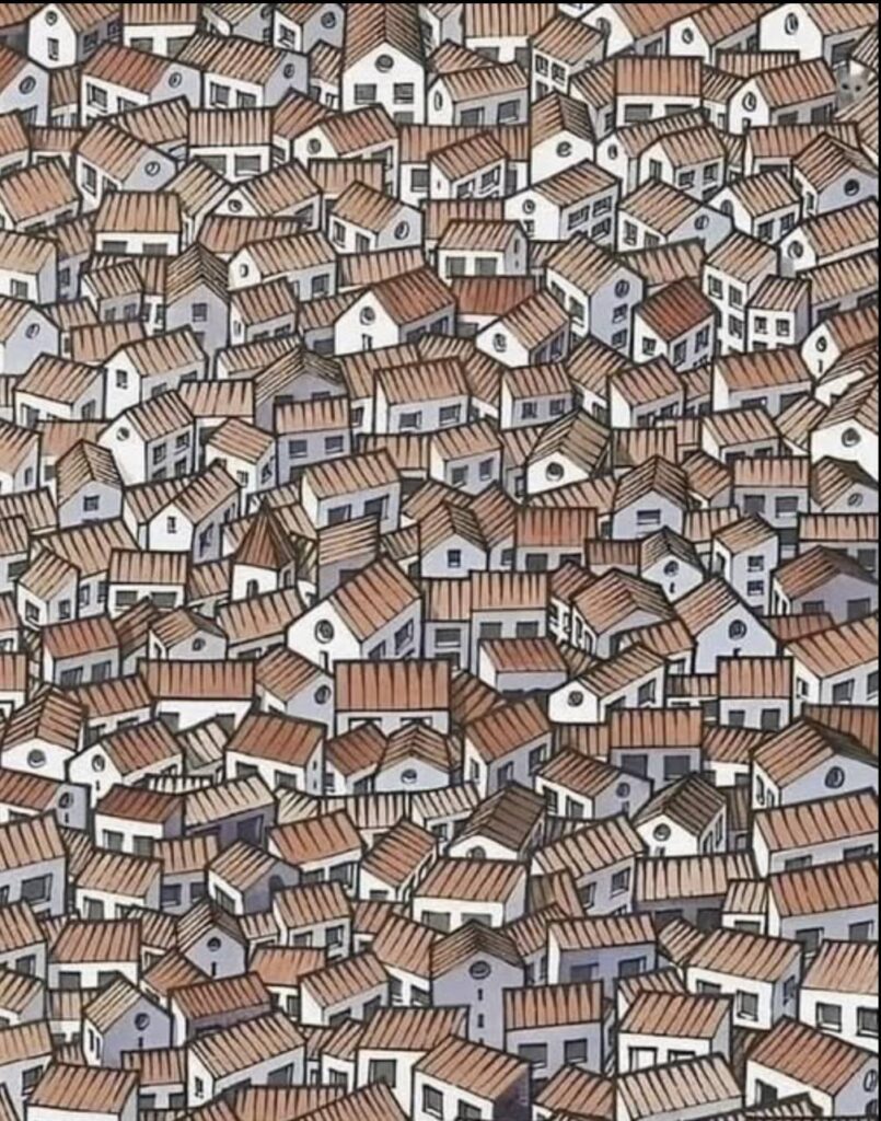 Wie wordt er nou niet blij van een zoekplaatje? Vandaag hebben we er eentje waarbij je echt even moet speuren. Op de illustratie zie je een heleboel piepkleine, getekende huisjes. Ze lijken stuk voor stuk bijna identiek: daken, raampjes, schoorstenen… een gezellige chaos aan details.