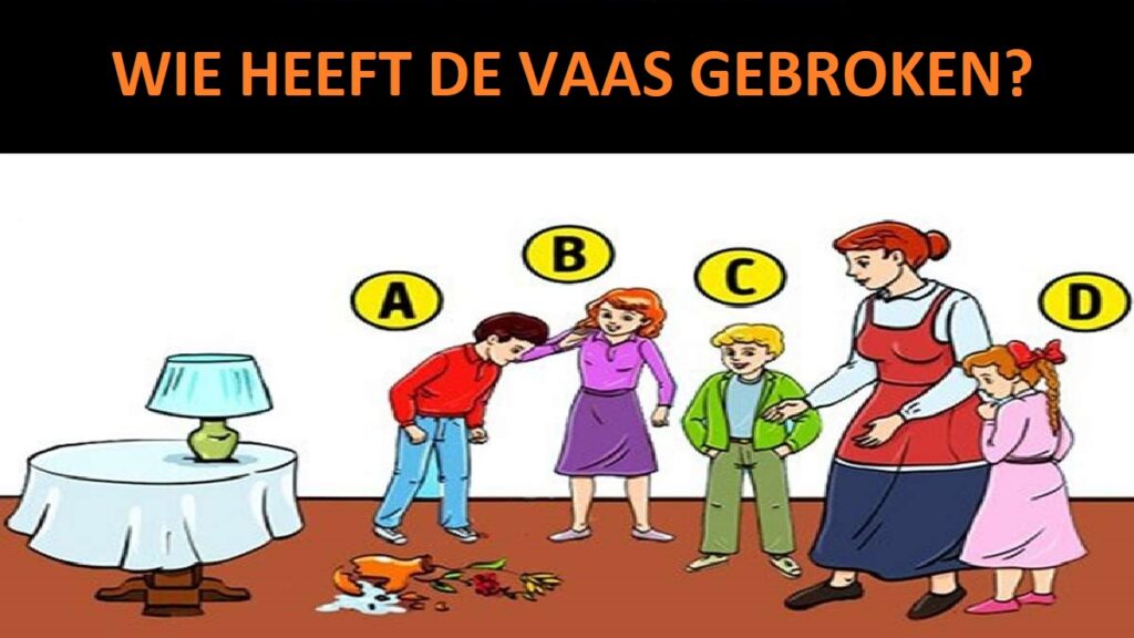 Stel je deze situatie voor: er is een kapotte vaas en vier kinderen eromheen. Elk kind reageert anders op wat er gebeurd is. Jij moet beslissen welk kind de vaas heeft laten vallen. Deze keuze kan veel verklappen over verborgen kanten van jouw persoonlijkheid.