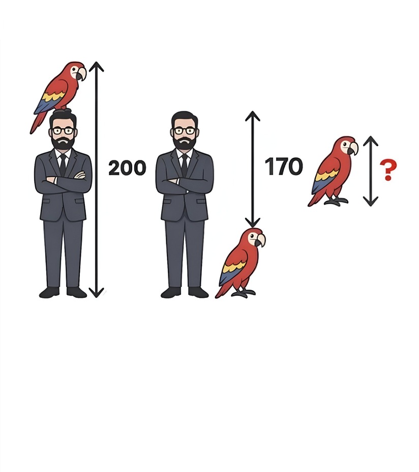 Raadsels kunnen er vaak luchtig en eenvoudig uitzien, maar zodra je de juiste redenering volgt, blijken ze verrassend logisch. In dit raadsel draait het om een man en een papegaai. Op de afbeelding zie je twee scènes: in de ene zit de papegaai op het hoofd van de man, in de andere staat de papegaai op de grond en staat de man ernaast. In beide gevallen staat een totale hoogte aangegeven. De vraag is: hoe groot is de papegaai nu echt?