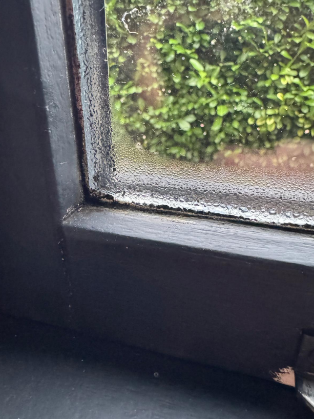 Laat je de druppels staan, dan krijgt schimmel vrij baan. Eerst zie je kleine zwarte puntjes in de hoeken, daarna volgt een muffe geur en op termijn beschadigde kitranden en houtwerk.