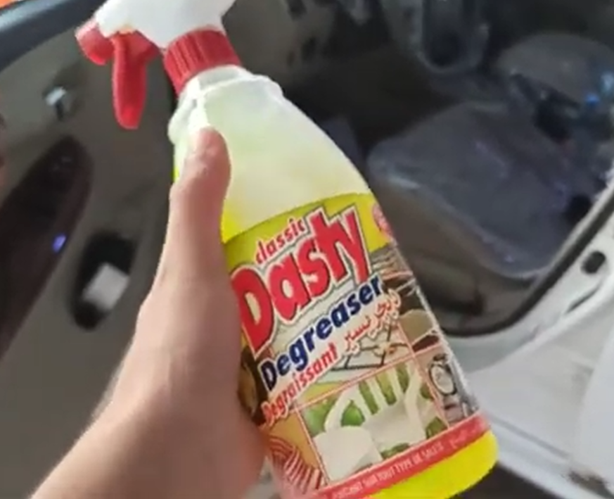 Ook bij de auto komt Dasty van pas. Velgen, kunststoffen in het interieur en sommige vlekken op bekleding krijg je er mooi mee schoon. Wees wel zuinig op lak, kunststof panelen en in de motorruimte: spaarzaam gebruiken en altijd goed naspoelen.