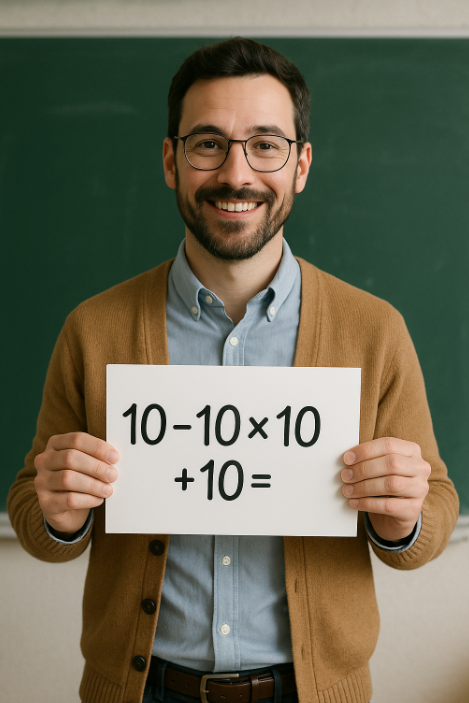 Wat komt eruit als je rekent: 10 – 10 × 10 + 10?